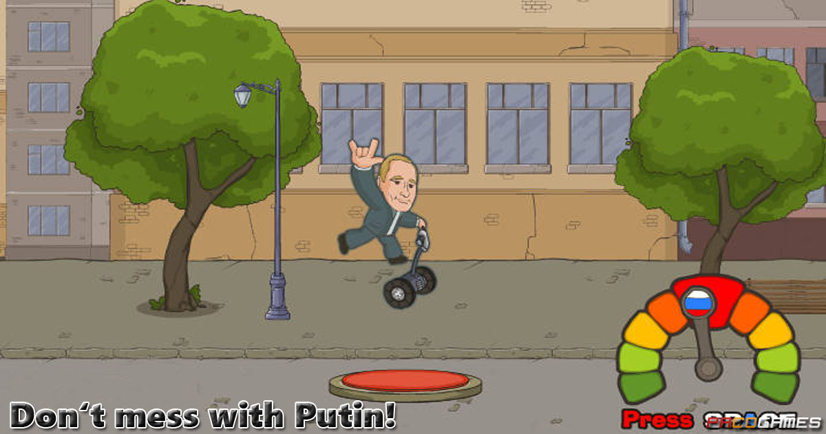 The "very specific" Russian President Vladimir Putin needs no introduction. But only a few know that, for the year 2016, he prepared a new campaign for the political stabilization of Russia and as it is usual with him, it is gonna be a crazy event. He will let spring shot himself in the air on the Segway and while he will be flying, he will try to get admiration from his true supporters. After all, he has his own style to show himself in public ... Fly with the Russian president as far as possible and buy upgrades for collected points. Have fun.